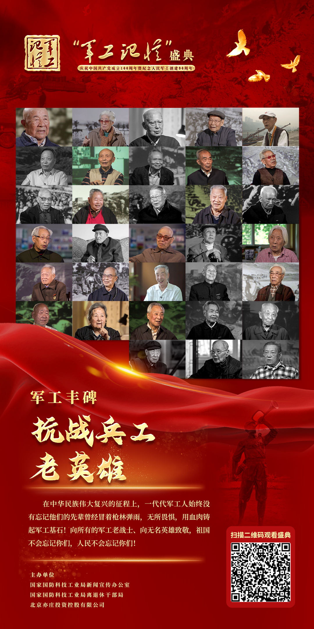 為慶祝中國共產黨成立100周年和紀念人民軍工事業(yè)創(chuàng)建90周年,國防科工局新聞宣傳辦公室、國防科工局離退休干部局、北京亦莊投資控股有限公司聯(lián)合主辦,各軍工集團公司和中物院協(xié)辦的“軍工記憶”特別節(jié)目,于7月31日正式在央視頻上線。