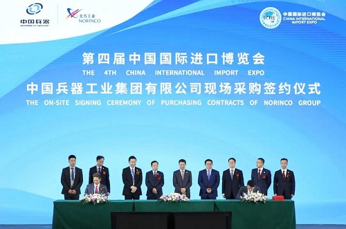11月6日,中國兵器工業(yè)集團有限公司在上海國家會展中心隆重舉辦第四屆中國國際進口博覽會現(xiàn)場采購簽約儀式,兵器工業(yè)集團副總經(jīng)理鄒文超,國資委、商務部、國家會展中心等有關(guān)部門領導,以及來自沙特、伊拉克、瑞士、日本、新加坡、俄羅斯、法國、美國等國知名企業(yè)簽約代表出席簽約儀式。此次簽約合同數(shù)量19個,金額達265億元。