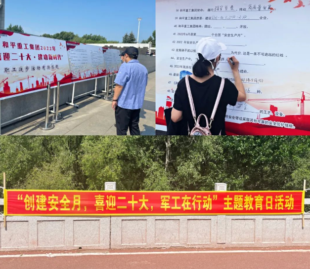 和平重工集團(tuán)在安全生產(chǎn)月期間組織開展了“創(chuàng)建安全月 喜迎二十大 軍工在行動(dòng)”主題教育日活動(dòng),現(xiàn)場(chǎng)懸掛宣傳橫幅標(biāo)語(yǔ),工作人員為職工們發(fā)放安全知識(shí)宣傳冊(cè)、扇子等宣傳用品,并在現(xiàn)場(chǎng)組織了安全知識(shí)有獎(jiǎng)答題環(huán)節(jié),調(diào)動(dòng)廣大職工參與的積極性,大力營(yíng)造了“關(guān)愛生命、關(guān)注安全”的良好氛圍。