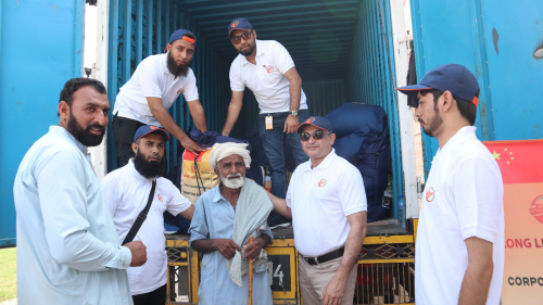 考慮到災(zāi)情期間交通不便,為了確保運(yùn)輸時(shí)效,項(xiàng)目組成立了由21人組成的運(yùn)輸保障志愿小分隊(duì)。9月6日,志愿小分隊(duì)連夜驅(qū)車400公里趕往災(zāi)區(qū),親手將救災(zāi)物品免費(fèi)發(fā)放到當(dāng)?shù)刎毨転?zāi)民眾手中,極大鼓舞了當(dāng)?shù)孛癖娍箵艉闉?zāi)的士氣。“無論遇到什么困難,中國(guó)總是第一個(gè)愿意幫助巴基斯坦的國(guó)家。感謝中國(guó)公司給予我們的支持與幫助,中巴友誼萬(wàn)歲!”當(dāng)?shù)鼐用窦娂姳硎靖兄x。