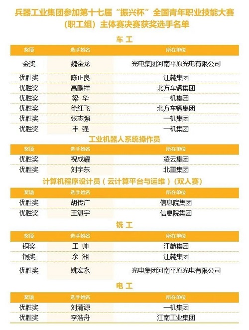 喜報(bào)丨兵器工業(yè)集團(tuán)青年職工在第十七屆“振興杯”全國(guó)青年職業(yè)技能大賽(職工組)決賽中勇奪金獎(jiǎng) |